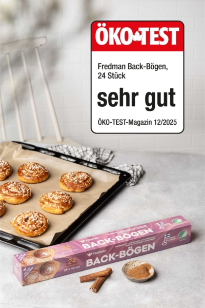 Unter den getesteten Backpapieren von ÖKO-Test Magazin 12/2025 haben die Fredman Back-bögen die Bestnote ”sehr gut” erhalten. Kein Ankleben, kein Ärger: Für müheloses Backen und Kochen auf höchstem Niveau.